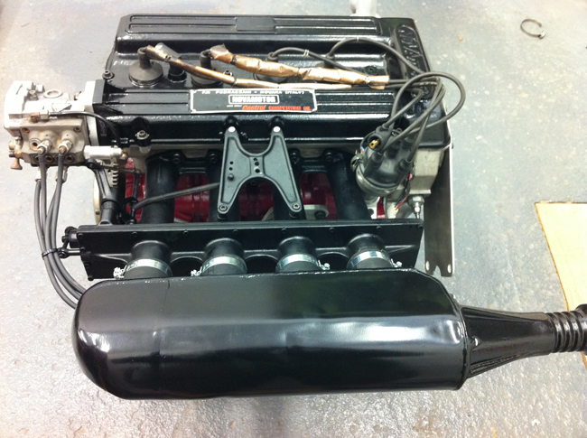 Avec une ouverture d'admission bridée à 24 mm de diamètre, il développe 170 ch à 5800 t/min. Il est couplé à une boîte de vitesse Hewland à 5 rapports.